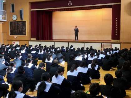 服装・頭髪などの自己点検を行い、令和元年最初の全校集会のスタートとなりました。また、校長先生からは、10連休の生活についてや、記憶についてのお話がありました。10連休前、何をしていていたか、学年だよりに何を書かれていたか覚えているだろうか、人間は忘れてしまうことも多いが、どのように記憶にとどめていくかも大切だ、勉強は学んだことをどう使うか・どう活用するするかが大事だが、そのためにまずは知識を身につけることから始めてほしいし、授業で学んだことをしっかり記憶にとどめてほしい。10日後には中間テストもあるので、今日からの授業についても、しっかりと取り組み、知識を身につけてほしい、という話がありました。