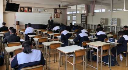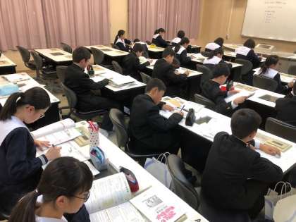 本日から中間テスト1週間前ということで、放課後、恒例の元気アップの学習会が行われました。申込者が100人を超え、3教室に分かれて自学自習をしていました。
