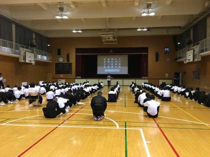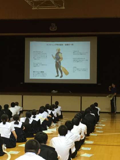 本日体育館にて、修学旅行での係の説明、ラフティングや高山市内散策、上高地散策など体験学習の説明が行われました。