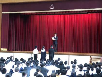 5月13日(月)本日の全校集会で、今年度前期の学級役員認証式が行われました。それぞれの役割をしっかりと果たし、頑張りましょう。
