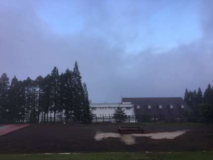 朝靄が立ち込めていますが、雲の隙間から青空がのぞいてきました。