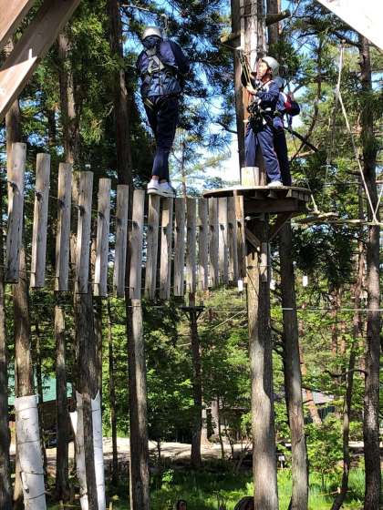 空中アスレチックで、みんな楽しんでコースを進んでいってます!