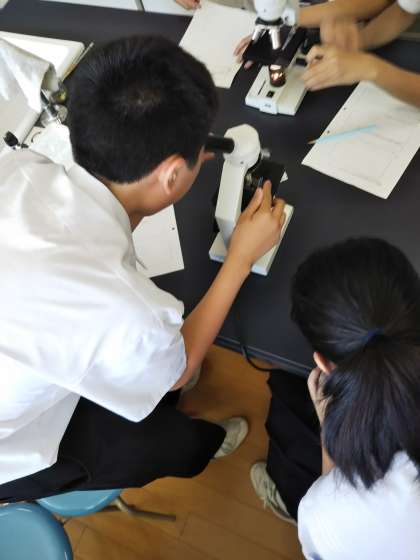 先週の2年生理科の授業で、教育実習の先生と細胞の観察を行いました。