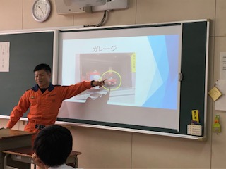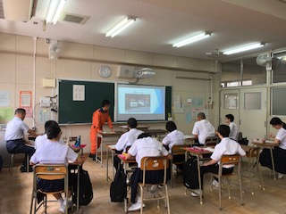 こちらの教室は、天王寺消防署の地域担当司令の方と救助隊員の方2名をお迎えして、お話を頂いています。