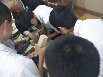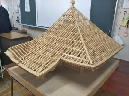 大きなな屋根の模型や、釘を使わない継ぎ手の実物を見せていただき、その精巧さに驚き、感動しました。