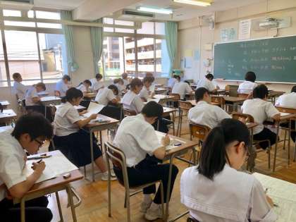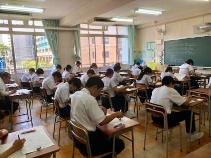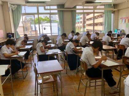 6月24日(月 )本日より3日間、1学期の期末テストが行われます。本日は、「国語・社会・2年生の保健体育、3年生の技術家庭科」の試験が行われました。みんな真剣に取り組んでいました。明日・明後日も頑張れ!