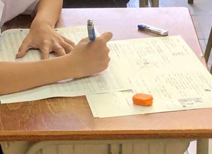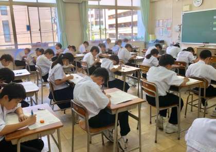 6月25日(火) 期末テスト2日目です。今日も、どの学年の生徒も真剣にテストに取り組んでいます。今日のテストは、理科、英語、1,2年:音楽 3年:美術 です。