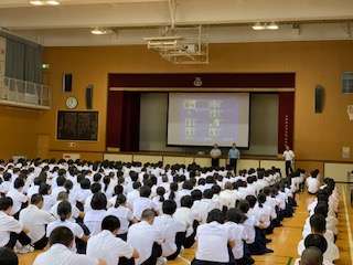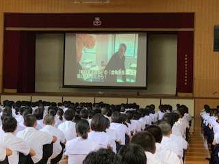 本日、4時間目に天王寺警察から2名の警察官の方を招き、薬物や、スマートフォンの危険性や、自転車の事故についてお話し頂きました。SNSなどでの何気ない行動で、大きなトラブルや事件にも巻き込まれる事を知りました。また、自転車での事故では、実際に加害者になってしまう怖さを感じました。