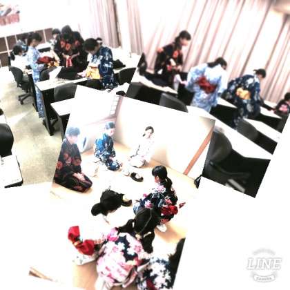 茶道部では、文化発表会など年に何度か浴衣を着てお点前をする機会があります。その機会にむけて、7月12日16日17日と着付けの練習に励んでいます。着付けの後は、浴衣姿でお手前のお稽古です。