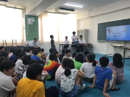 7月17日(水)午後、天王寺小学校の後輩に向けて、生徒会執行部が天王寺中学校の学校紹介を行いました。
