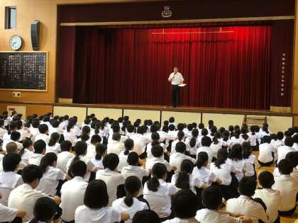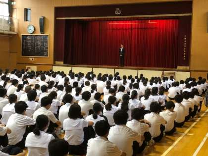 夏休み、3つのことを大切にし、普段できないことにも努力してほしい。また、行き詰まった時には、保護者の人、先生や友達、また相談窓口もあるので、相談してほしい、というお話がありました。