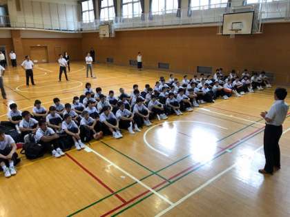 1学期の終業式が終わり、その後すぐに体育館で、令和元年度天王寺中学校体育大会実行委員の立ち上げ式が行われました。実行委員長には、三年生の女子が選ばれました。今年度の体育大会もこのメンバーが中心となって、素晴らしい行事となるように頑張ってもらいたいと思います。