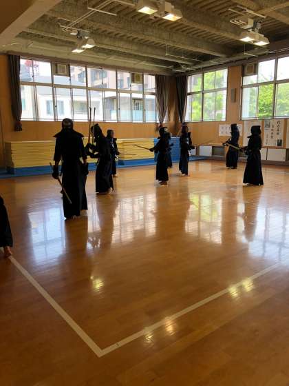 8/18、お盆休み明けの稽古で卒業生四人が練習に来てくれました。久々に一緒に稽古をすることができ、在校生の部員たちは充実した表情を浮かべていました。今日教えてもらえたことを明日からの練習に活かして、8/25の8ブロック大会では上位進出を目指します。