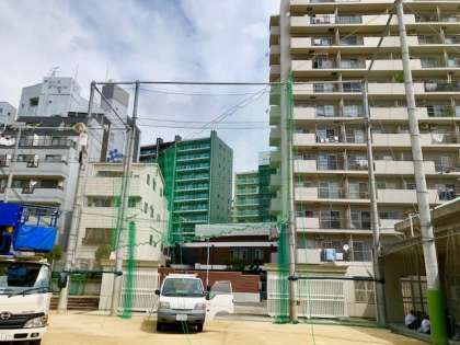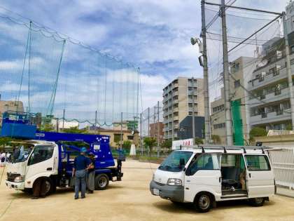 8月22日(木) 旧講堂横の野球部のホームベース付近に、可動式の防球ネットが設置されました。これは打ったボールが外に出ないようにするためのものです。
