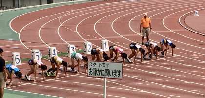3年生田中さんが「女子100m予選」5組第2レーンに出場しました!