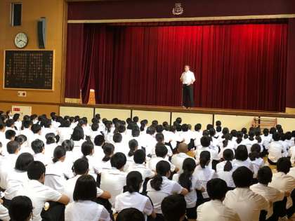 また、生徒指導主事の坂元先生よりお話があり、服装・頭髪等の自己点検を行いました。