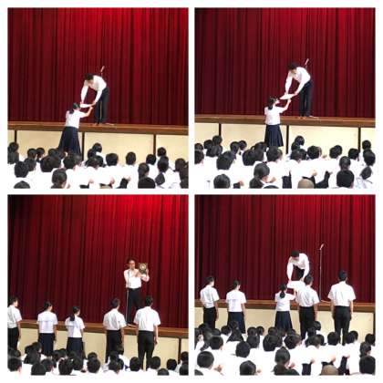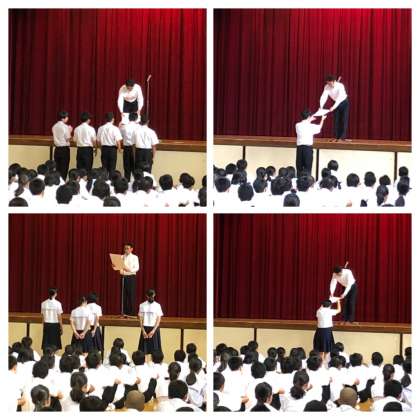 本日の始業式の中で、夏休み中の部活動の大会で獲得したたくさんの賞状の表彰がありました。本日表彰されたのは、以下の通りです。