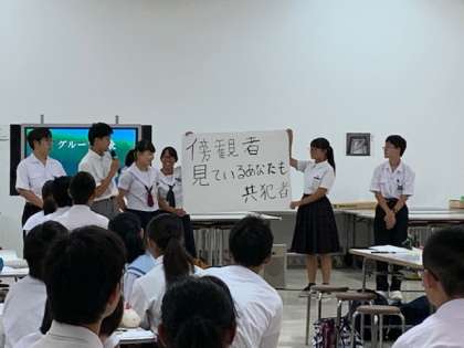 各グループで考えた「いじめをなくすスローガン」を発表しました。