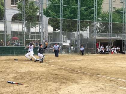 天王寺中学校男子PTAソフトボールチームは聖和小学校との試合を先ほど終えました。4対4で迎えた最終回、劇的なサヨナラ勝利を収めました!