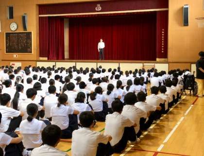 9月9日(月)全校集会では、校長先生から「昼休みの取り組みの後切り替えが早く、5時間目の授業を落ち着いて取り組んでいる姿に感心した」とお褒めのことばがありました。天王寺中学校の生徒として、この良さを引き続きすすめてください。