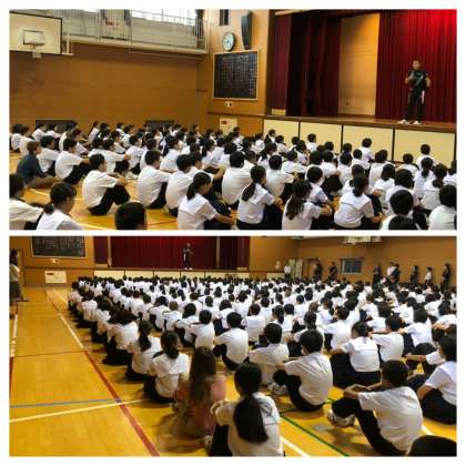 9月24日(火) 全校集会の様子です。スイスの生徒達も参加しました。