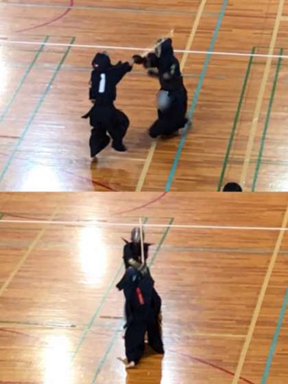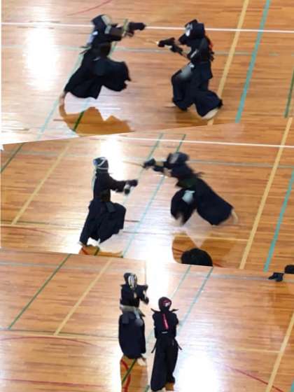 二回戦は、相手が今年度の全国大会出場校でした。全員が気合を入れて挑みましたが、先鋒、次鋒、中堅と惜しくも敗れてしまい、副将が一本勝ち、大将が引き分けと1-3で敗戦となりました。悔しさは残りましたが、全てを出し切ることができた本当にいい試合でした。