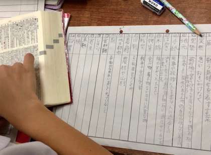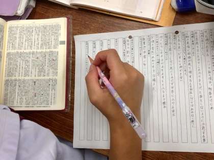 1年生の国語の授業を見学に行くと、辞書を使って意味調べをしていました。最近は電子辞書やスマートフォンなどの検索機能を使って調べることも多くなってきましたが、やはり基本は紙の辞書を使うこと。それぞれが辞書を引き、言葉と向き合っていました。