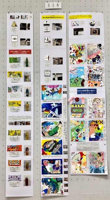 天王寺中学校からも美術の授業でつくられた1年生から3年生の代表生徒の作品が展示されています。