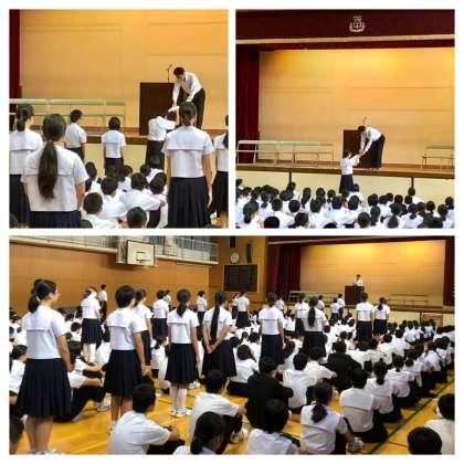 また「第10回帝塚山ジュニアアート展」で大賞を受賞した3年生女子の表彰も行われました。