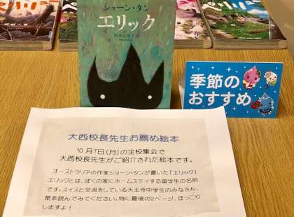 10月7日(月) 全校集会で大西校長先生が紹介してくださった絵本「エリック」が早速、学校図書館に入りました。