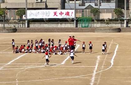 10月10日(木) 午後、天王寺幼稚園の運動会練習が本校の運動場で行われていました。練習の最後にリレーをされていました。