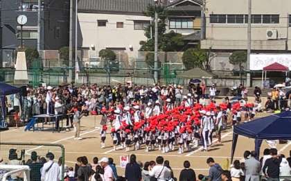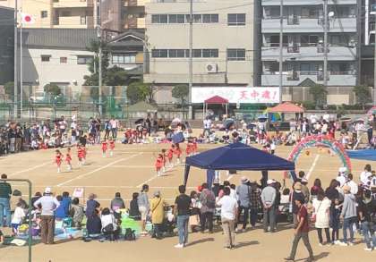 10月13日(日)午後、昨日台風のため延期された天王寺幼稚園の運動会が、本校のグラウンドで行われています。今日は秋晴れで、園児達も競技に演技に一生懸命です!