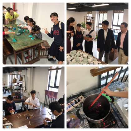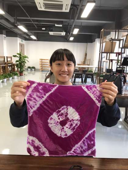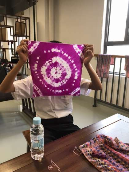 10月24日(木)午後、伝統的な美術の見学をし、その後、実際に体験です!日本の藍染めのようなものでした。とても綺麗にでき上がっていますし、楽しそうですね。お土産として持って帰ってくださいね。