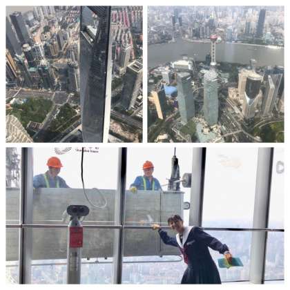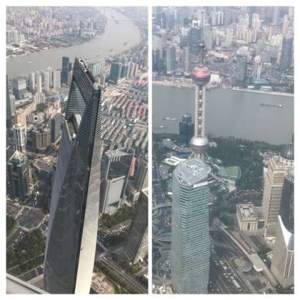 上海タワーからの景色です。見晴らしも最高ですね。周りも高層ビルが立ち並んでいますね。