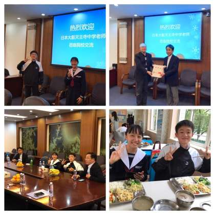 「新華初級中学校」でも歓迎していただきました。天中の二人も、とてもうれしそうですね。昼食もいただきました。