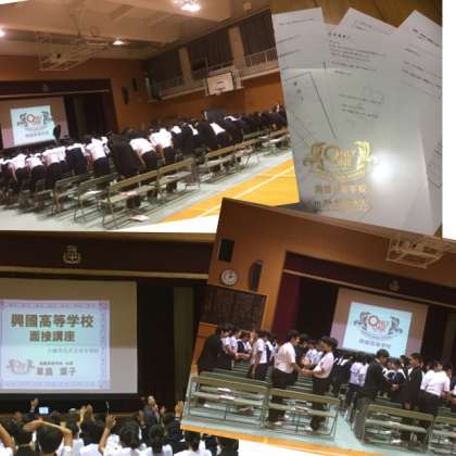 10月25日(金)5・6限目、興國高等学校より校長の草島葉子先生をはじめとする先生方、また現役興國生の生徒さんが、天王寺中学校の3年生を対象に進路講話に来てくださいました。