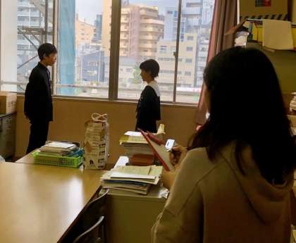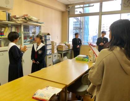 11月11日(月)2年生の英語の授業では、スピーキングテストが行われていました。テーマはバスでの道案内の仕方です。道を尋ねる人・教える人に分かれて、ジェスチャーをつけながら覚えた英語をできるだけ自然な感じで話していました。