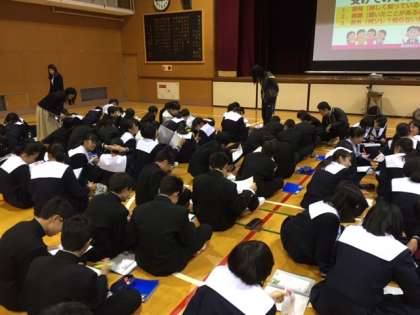 11月25日(月)6時間目の1年生の授業は、12月10日に行われる、職業体験セミナーのガイダンスでした。講師の先生方に説明をしていただき、会場マップに自分の興味のある職業に印をつけるなど、生徒たちは熱心に取り組んでいました。体験セミナー当日のイメージがしっかりできました。