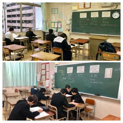 11月28日(木) 期末テスト2日目の朝です。毎朝登校時間の早い天王寺中学生ですが、テストの朝は、早くから教室で勉強している姿があります。それぞれが今日のテストに向けて、勉強しています。頑張れ、天中生!