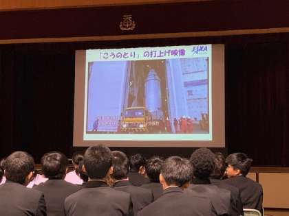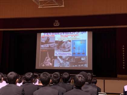 12月6日(金) 本日5・6時間目に職業講話として、国立研究開発法人宇宙航空研究開発機構の宮里様をお招きし、JAXAの仕事についてお話をいただいています。
