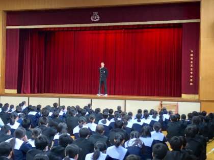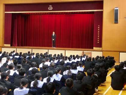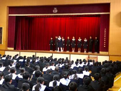 12月9日(月) 本日の全校集会では、校長先生より、昨日行われた「大阪市いじめを考える中学生フォーラム」についてのお話がありました。大阪市130校の生徒会が「どうしていけばいじめがなくなるのか」を考えたフォーラムです。昨日の各ブロックからの発表では、キーワードに「当事者」という言葉が挙げられました。直接関わる人・すぐ周りにいる人だけでなく、学級、学年、学校と、当事者としての意識を持って、自分だったら何ができるのかを考えて行動していきましょう。