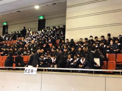 1年生は職業体験セミナーが行われる会場、エディオンアリーナ大阪に到着しました。10時からの体験を待っています。