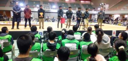 明日行われる、きのくにロボットフェスティバルの会場(和歌山県御坊市立体育館)で車検・抽選会・オリエンテーション・ルールの確認・ハーサルが行われました。