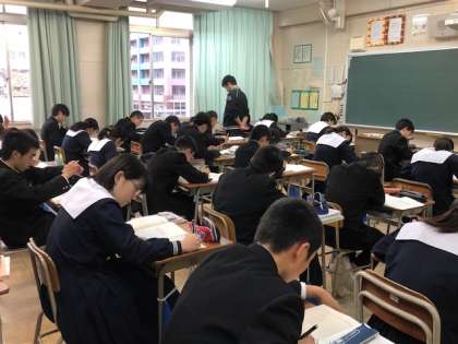 12月17日(火) 3学期に行われる1,2年チャレンジテストに向けて、授業の中で過去問に取り組む教科も。今日6時間目は1年生の国語科と2年生の英語科で取り組んでいました。今年度のチャレンジテストは1月9日(木)です。しっかり頑張りましょう。
