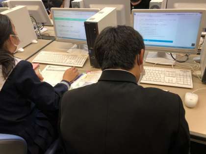 12月18日(水) 2年生の技術の授業は、パソコン教室でパソコンを使って調べ学習を行っていました。どのようにすれば素早く調べたい内容を調べることができるのかをパソコンを使って学習していました。