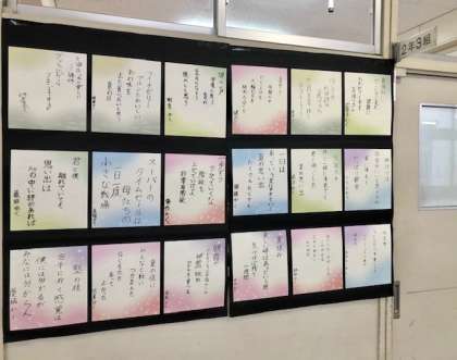 2年生は国語の授業で作成したオリジナル「短歌」。クスっと笑顔になる内容ですので、ぜひ他のクラスの作品も見てくださいね。