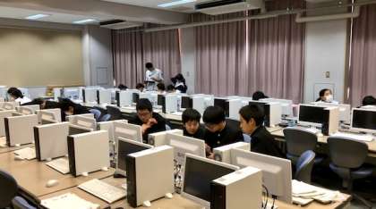 12月19日(木) 放課後、2年生の各クラス各班の代表の人が残り、2月に行われる「留学生との交流会」で日本について紹介するためのパワーポイントの画面を作成していました。紹介する内容にもそれぞれの班の切り口がおもしろく、また、内容に合わせた字体や背景の色にも工夫の跡が!当日の発表が楽しみです。