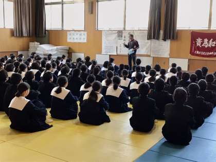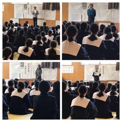 12月24日(火) 令和元年2学期最後の学年集会が行われました。1年生は格技室で、冬休みに向けての諸注意がありました。また、各教科の先生方から冬休みの宿題や頑張ってほしいことについての話もありました。