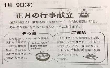 1月9日(木) 本日の給食は「お正月の行事献立」でした。
