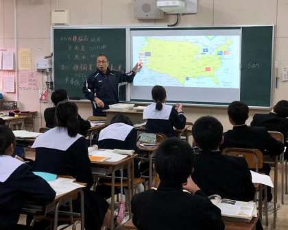 1年生の社会科の授業では、「アメリカ合衆国の工業はどのように発展し、世界をリードするようになったのか」について学習していました。世界的にも有名な企業がたくさんあることを確認しながら学習していました。